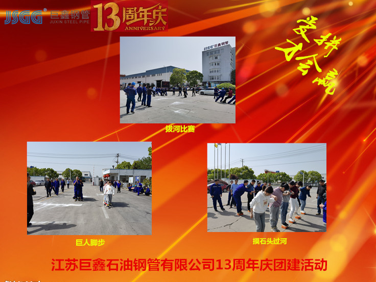 4月30日是江蘇巨鑫石油鋼管有限公司成立13周年的喜慶日子。當日下午2時,公司管理人員、員工代表滿懷節日喜悅,齊聚公司門口,參加公司成立13周年“感恩相伴、夢想同行”主題團建活動。