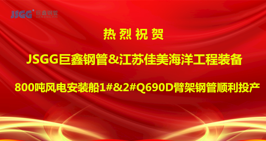 JSGG巨鑫鋼管正在生產江蘇佳美海洋工程裝備800T風電安裝船1#2#臂架鋼管,規格為Φ630*20/24mm,材質為Q690D,數量40多支。江科大海工院王院長一行主要目的是對此次訂單生產過程中的一些參數進行探討和收集,為JSGG巨鑫鋼管下一步生產制作更高鋼級的鋼管提供力學參數。