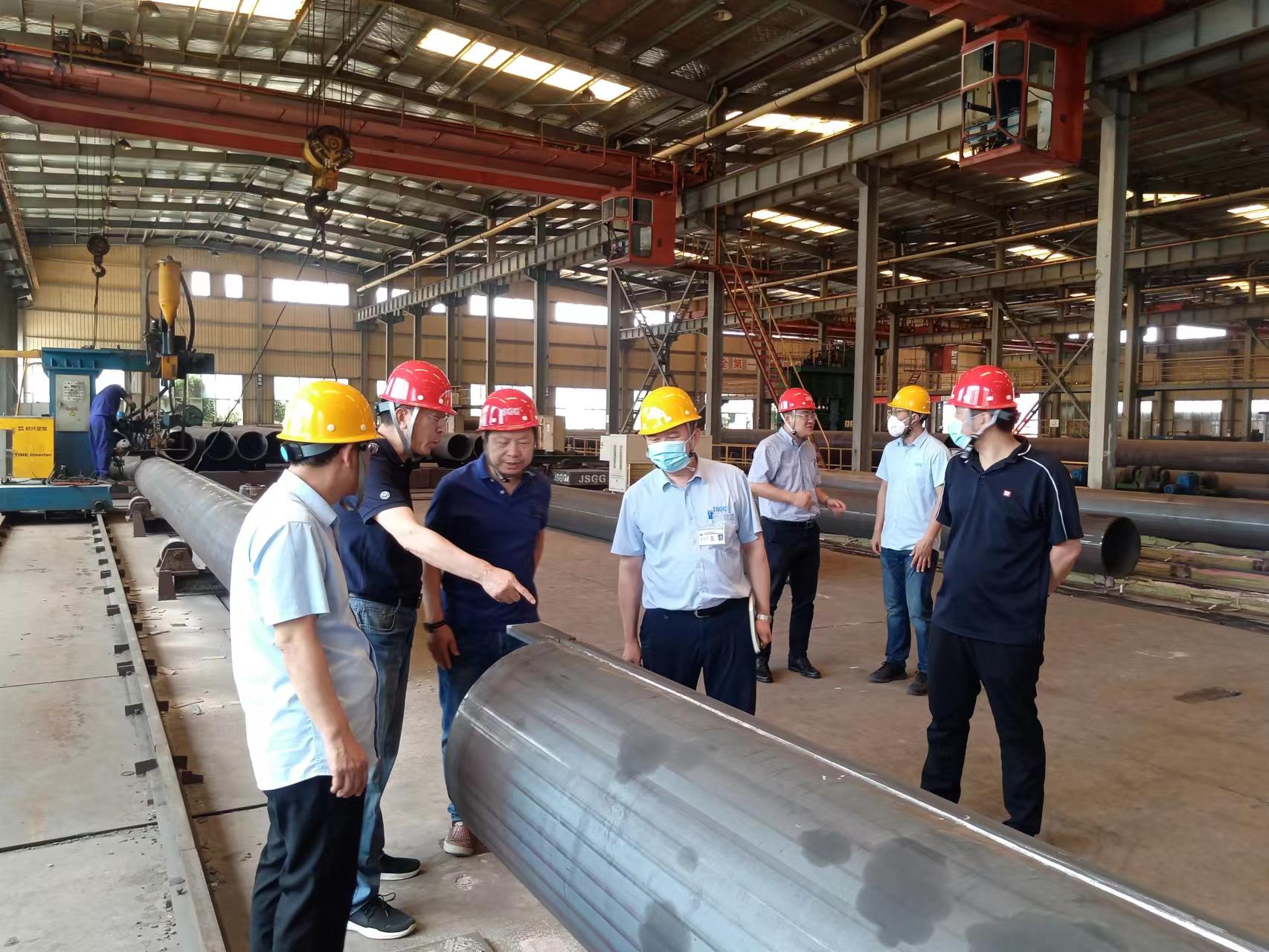 2022年6月10日,中國海洋工程鋼結構協會第八屆常務理事、江蘇科技大學船舶與海洋工程學院(以下簡稱:江科大海工院)王林副院長帶領海工院的博士到江蘇巨鑫石油鋼管有限公司(以下簡稱:JSGG巨鑫鋼管)調研。王院長主要從事沖擊作用下結構的力學性能及損傷機理、結構動力分析、結構極限承載、穩定、可靠性及風險評估、結構優化設計、結構加固、船舶與海洋工程工藝力學等方面的教學和研究工作。