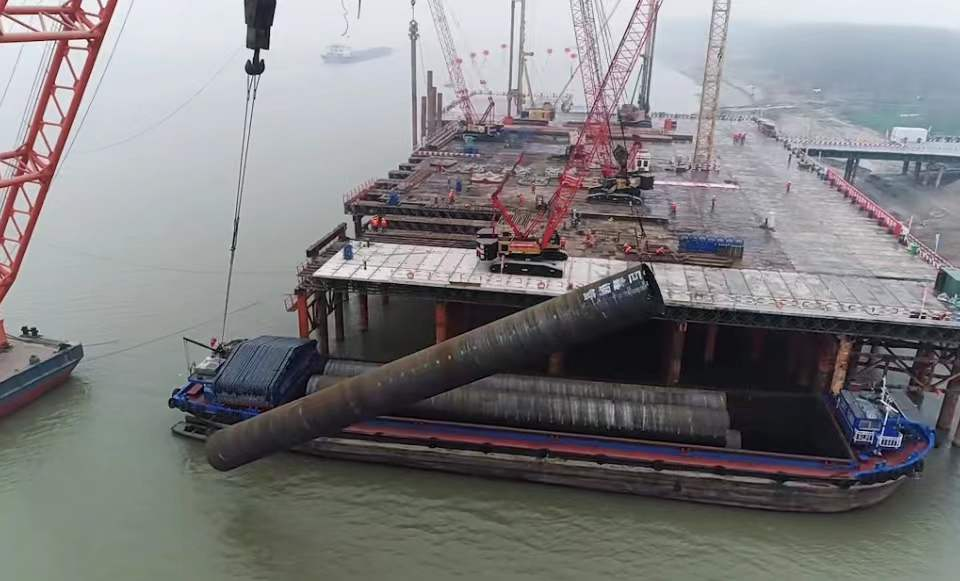 近日,在江蘇巨鑫石油鋼管有限公司(以下簡稱“JSGG巨鑫鋼管”)海工基地,工人師傅們冒著嚴寒,熱火朝天的生產著G3銅陵長江公鐵大橋鋼護筒,碼頭上一支支鋼護筒騰空而起,平平穩穩的吊運到運輸船上。