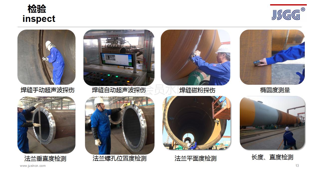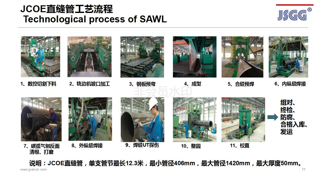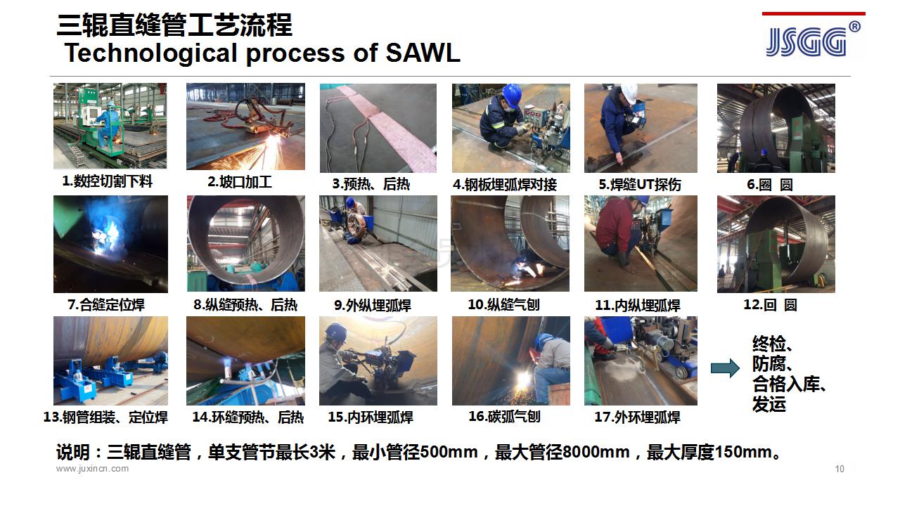 江蘇巨鑫石油鋼管有限公司坐落于風景秀麗的古城揚州,現有1條國內領先水平JCOE直縫雙面埋弧焊管生產線,5套三輥鋼板卷制成型直縫雙面埋弧焊管生產設備,4條螺旋縫雙面埋弧焊管生產線,年設計生產能力達40萬噸。可批量供應φ219~φ7000mm,壁厚為4mm~150mm,單位長度1.5m-120m的焊管,并可配套供應各種鋼管管件及各種形式的防腐鋼管,產品廣泛應用于碼頭及橋梁樁基、航道疏浚、海上風電、高鐵和地鐵深基礎、城市管網、鋼結構、特高壓輸電網等領域。