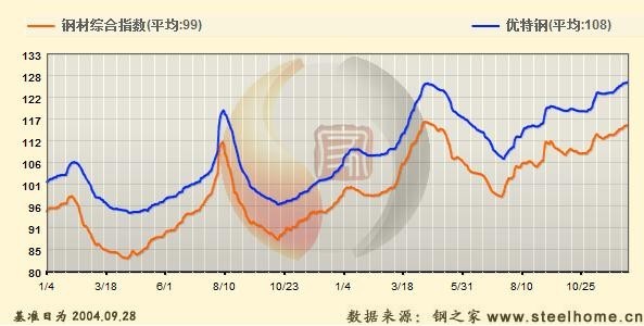 優(yōu)特鋼:本周國內(nèi)優(yōu)特鋼市場價格延續(xù)小幅上漲。截至本周末,鋼之家優(yōu)特鋼價格指數(shù)(SH_CSPI-S)為126.84點,較上周上漲0.61%,較上月上漲2.64%,較去年同月上漲21.49%,較去年全年上漲15.51%,較去年同期上漲15.61%。其中,優(yōu)線價格指數(shù)122.78點,較上周上漲0.99%,較上月上漲2.65%,較去年同月上漲19.29%,較去年全年上漲15.06%,較去年同期上漲15.19%;結(jié)構(gòu)鋼價格指數(shù)129.66點,較上周上漲0.48%,較上月上漲3%,較去年同月上漲22.14%,較去年全年上漲16.41%,較去年同期上漲16.54%。