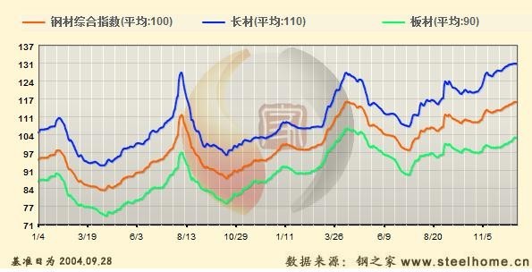 長材:本周國內(nèi)長材價格小幅上漲。截至本周末,鋼之家長材價格指數(shù)(SH_CSPI-L)為130.35點,較上周上漲0.25%,較上月上漲3.18%,較去年同月上漲24.94%,較去年全年上漲14.07%,較去年同期上漲14.14%。其中,鋼之家普線材價格指數(shù)為128.23點,較上周上漲0.03%,較上月上漲3.03%,較去年同月上漲26.61%,較去年全年上漲16.29%,較去年同期上漲16.39%;螺紋鋼價格指數(shù)為134.75點,較上周上漲0.13 %,較上月上漲3.46%,較去年同月上漲24.41%,較去年全年上漲13.02%,較去年同期上漲13.08%;型材價格指數(shù)為122.95點,較上周上漲1%,較上月上漲2.57%,較去年同月上漲23.7%,較去年全年上漲13.54%,較去年同期上漲13.56%。