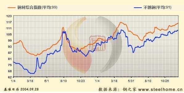 不銹鋼:本周國內(nèi)不銹鋼市場價格小幅回落。截至本周末,鋼之家不銹鋼價格指數(shù)(SH_CSPI-SS)為107.32點,較上周下跌0.21%,較上月上漲2%,較去年同月上漲20.5%,較去年全年上漲20.71%,較去年同期上漲21.05%。