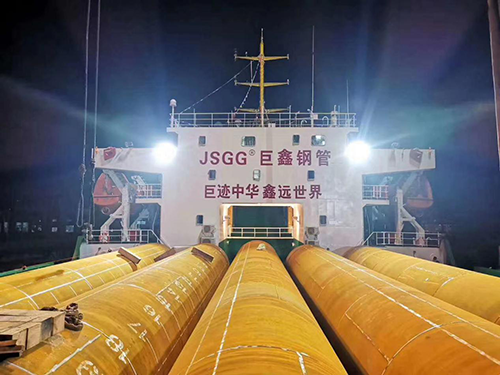 為了響應國家新能源規劃,大力發展海上風電計劃,保證項目工期,順利安全發運,巨鑫鋼管整合一條7500噸的海運船作為延伸服務,專門為海上風電項目的順利發運提供保障。
