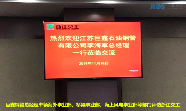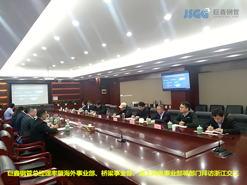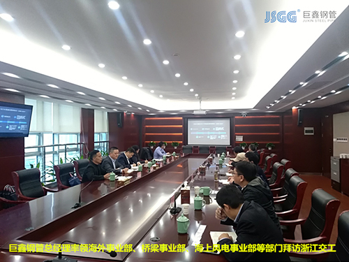 為了感謝浙江交工長期以來對巨鑫鋼管的幫助和支持,同時也為能進一步提高巨鑫鋼管的服務質量。2019年11月18日,巨鑫鋼管總經理李海軍率橋梁碼頭事業部、高鐵地鐵事業部、海上風電事業部、城市管網事業部、海外事業部五大部門經理集體拜訪了浙江交工集團。